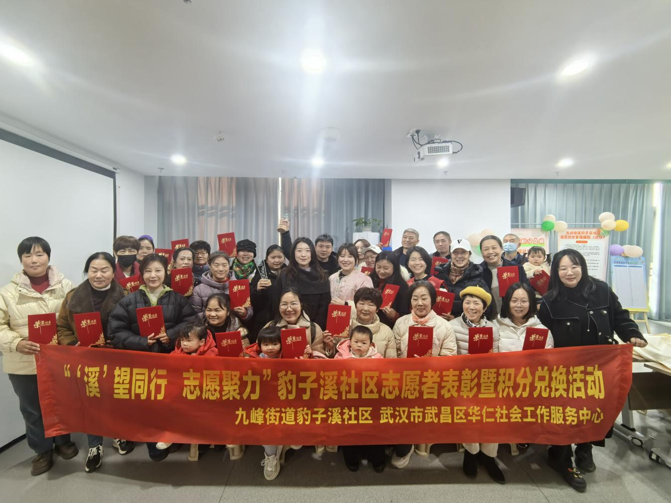12月31日,时值岁末寒冬,武汉市东湖新技术开发区九峰街道豹子溪社区联合武汉市武昌区华仁社会工作服务中心,共同举办了“‘溪’望同行 志愿聚力”志愿表彰暨积分兑换活动。活动旨在总结年度志愿服务工作,弘扬奉献精神,凝聚向善力量。社区负责人、志愿者代表与居民等30余人齐聚一堂,同叙奉献佳话,共享志愿温情。