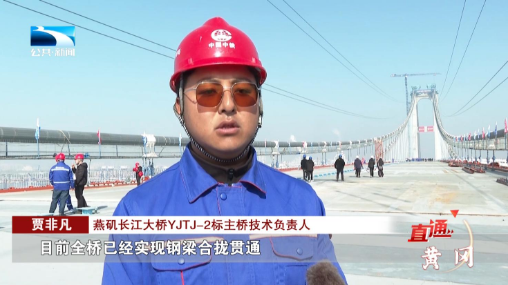 燕矶长江大桥YJTJ-2标主桥技术负责人 贾非凡:目前全桥已经实现钢梁合拢贯通,施工进展已完成80%,计划2026年通车。