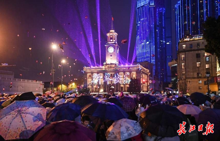 “10、9、8……3、2、1”2025年12月31日晚,2025年的最后10秒钟,江汉关广场上,数以万计的人开始齐声倒数。当百年钟楼的跨年钟声在雨中准时敲响,在“新年快乐”的欢呼中,人们放飞气球,一起跨越到崭新的一年。