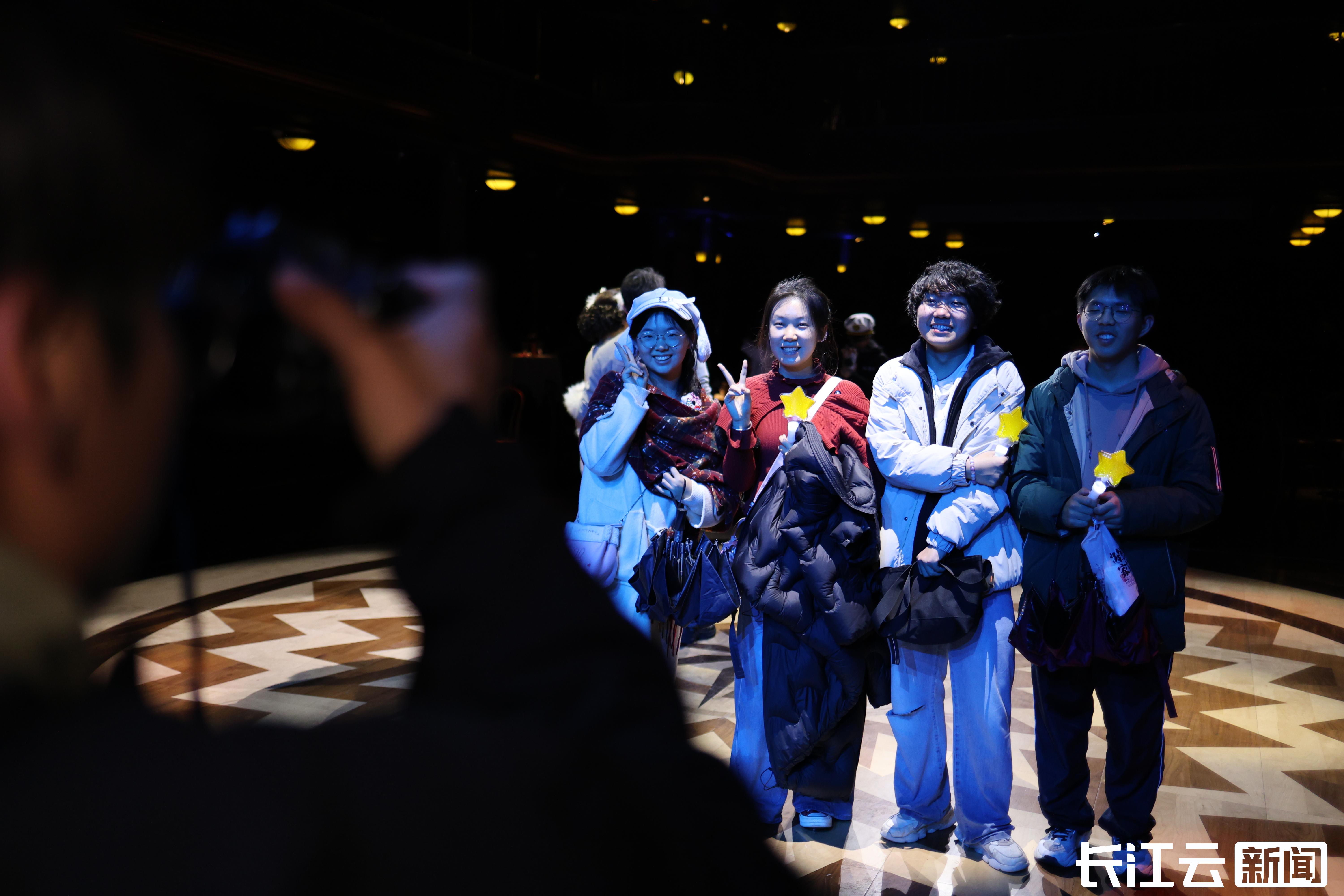 “我们刚才在舞厅和演员跳了舞,又一起在船舱里‘追’故事。虽然素不相识,但在这艘船上,大家很自然地聊天、分享,好像真的成了‘旅途中的知音’。”甲板上,来自长沙的大学生小陈与刚在船上结识的几位同龄人凭栏远眺,两岸的新年灯光秀倒映在江面,也倒映在她们的笑眼中。