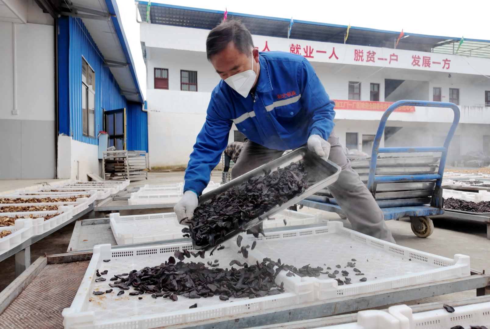 崇阳县伟泰生态种养合作社负责人尧雄伟说:“我们这个厂已经有四年了,主要做中药材加工,目前稳定吸纳20名劳动力,既能自己盈利又能带动村民增收。”