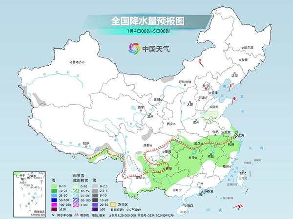 具体来看,中央气象台预计,今天,西北地区东南部、河南西部、湖北西部、川西高原北部、贵州西北部、青海南部、西藏南部和东部等地部分地区有小到中雪或雨夹雪;四川盆地、湖北大部、湖南北部、贵州中东部、云南大部等地部分地区有小雨,其中,云南南部等地部分地区有中雨。