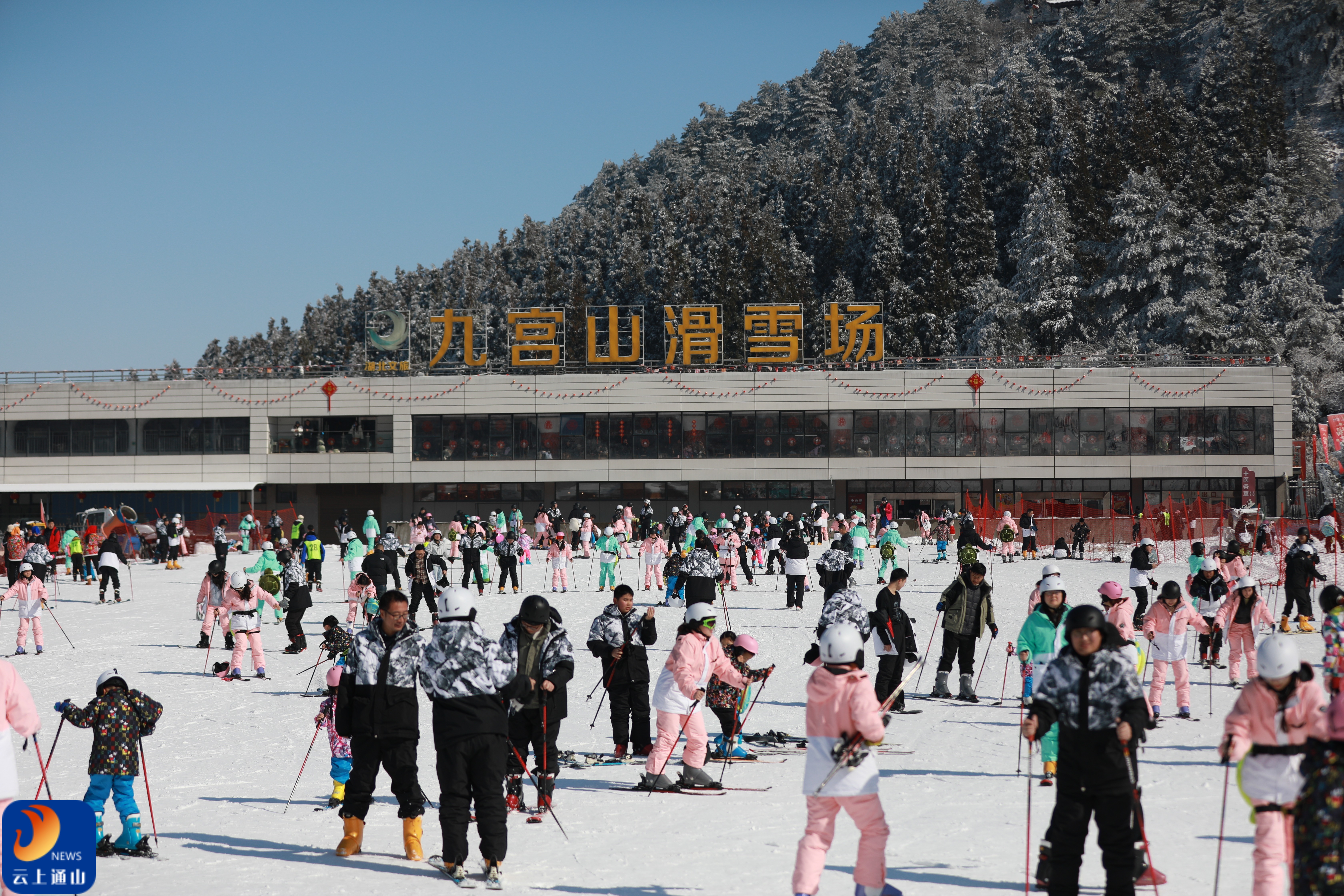 当新年的第一缕阳光吻上湖北省咸宁市通山县九宫山的雪顶,上万双炽热的脚步早已迫不及待地向雪山进发。元旦假期,被誉为“江南第一高山室外滑雪场”的九宫山滑雪场完成了全面升级改造,以全新面貌迎接全国各地游客。