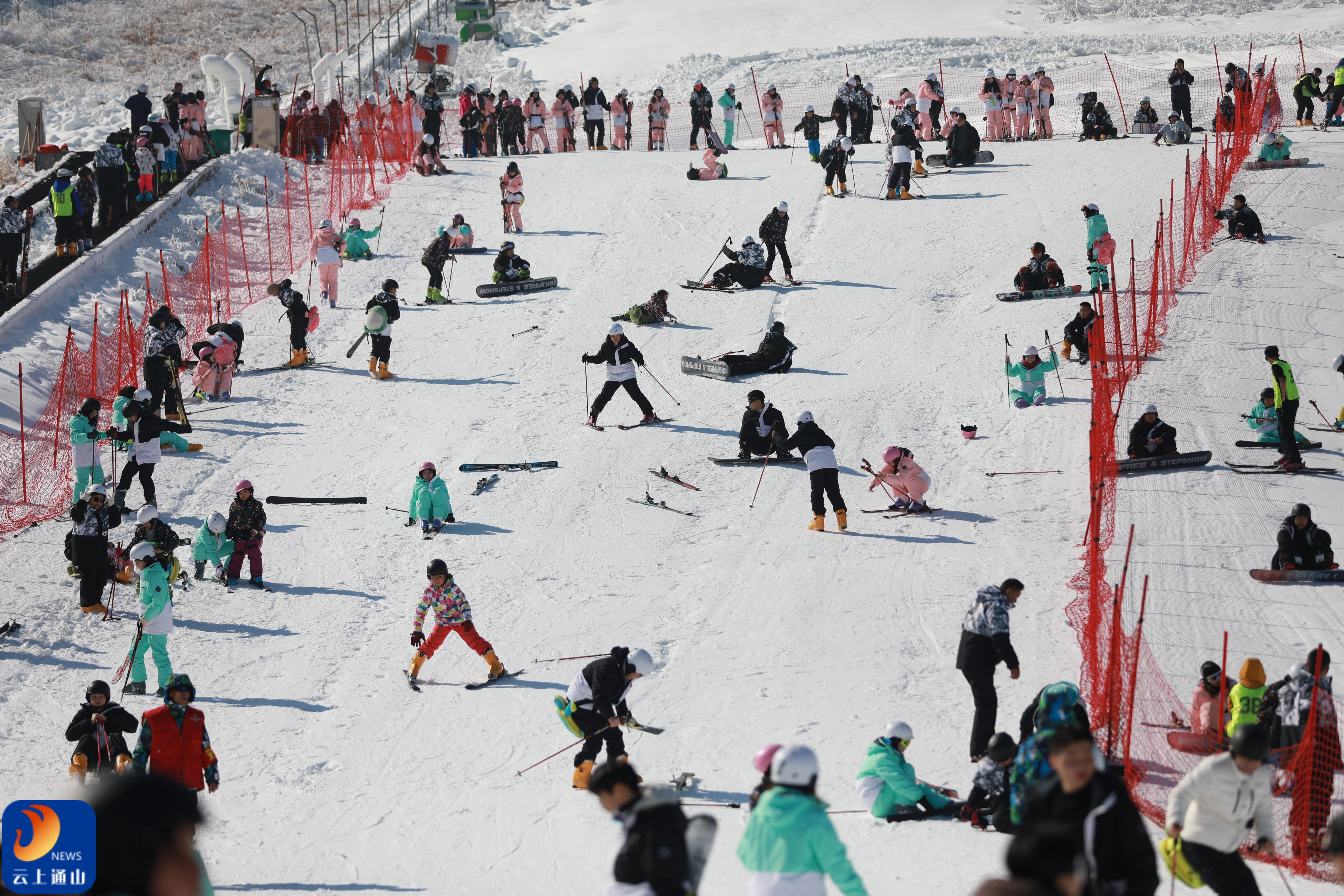 ▲元旦假期次日,九宫山滑雪场已然成了滑雪爱好者的游乐场。