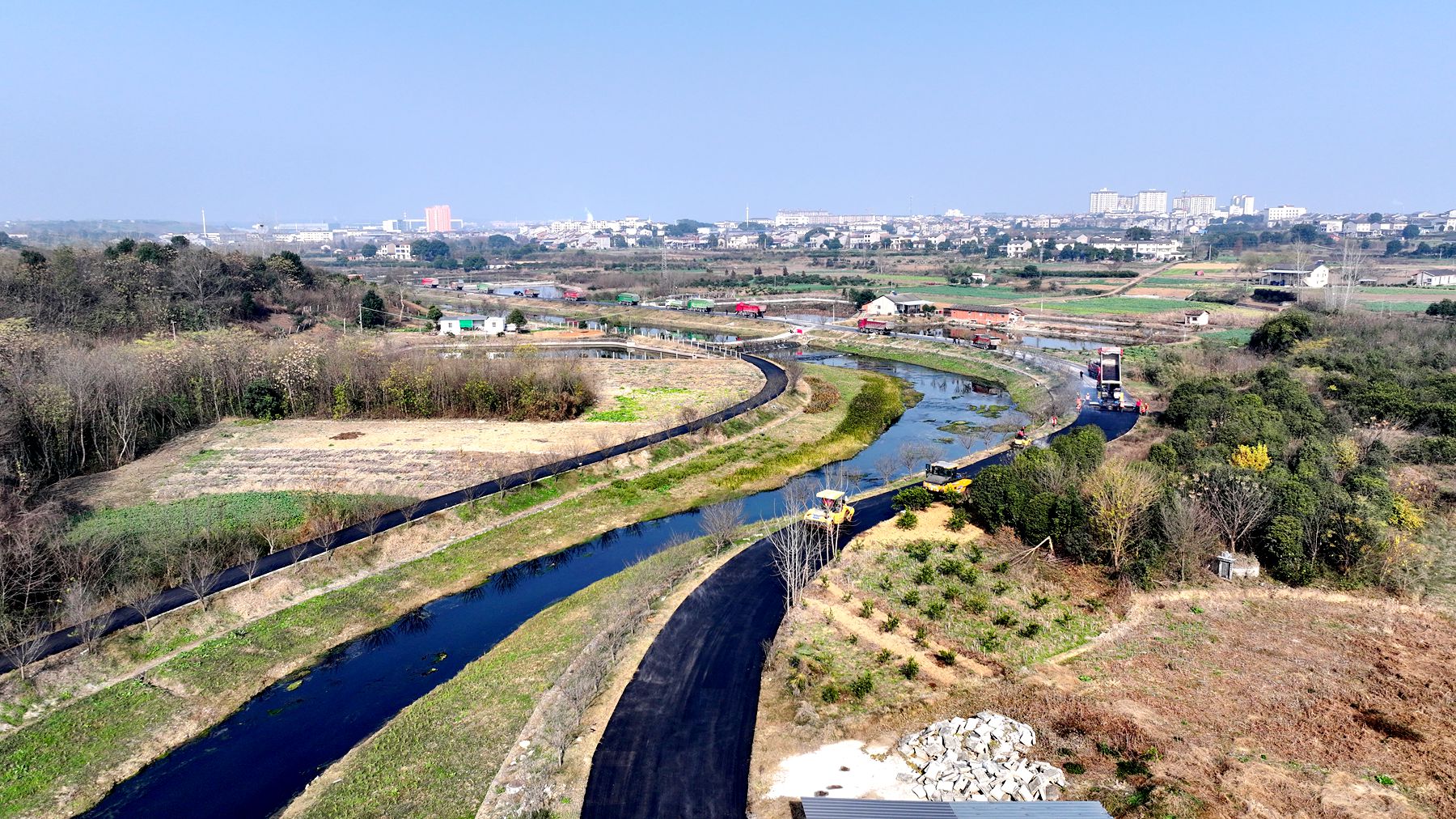 2025年,鸦鹊岭镇抢抓玛瑙河流域乡村振兴示范带建设机遇,依托全域国土整治项目,全力推进高标准绿道建设。目前,涉及5个村的23.5公里道路已完成刷黑,沿途打造5个特色景观节点,更实现了与枝江、当阳两地农村道路的互联互通,极大便利了沿线群众的生产生活与出行。“这条道路建成后,满足了我镇‘畅安舒美绿’的通行需求,为我镇全面推进‘四好农村路’建设奠定了坚实基础。”玛瑙河流域乡村振兴示范带专班工作人员傅高忠介绍道。