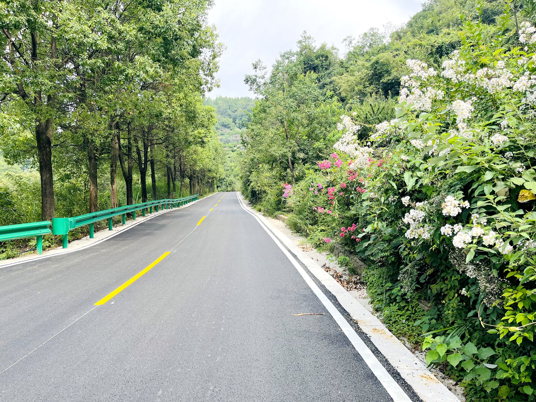 “我们对两金路7处回头弯进行了弯道加宽,将回头弯(曲线)半径增加至12米,可满足大型客车通行需求。同时对老路病害进行了针对性处治,由原来的混凝土路面加铺成沥青混凝土路面,有效提升了驾乘舒适度。针对山区道路的特点,我们还对全线交通标志、标线、护栏进行了重建,切实提高了农村道路的行车安全性。”湖北路桥集团夷陵区分公司负责人周武详细介绍了改造细节。
