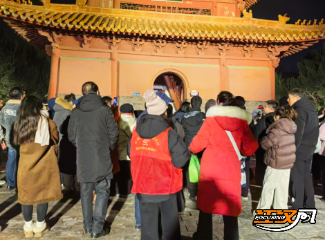 随着元旦当天天气转晴,活动全面恢复。从1月1日至3日,志愿者们的身影活跃在每一个精彩瞬间:在东门片区,他们于楚风巡游、入城仪式、古城灯光秀、万马奔腾无人机秀等环节维持秩序,提供精准路线指引;在南门片区,他们穿梭于斗武、斗技、斗诗快闪秀和江湖音乐会现场,既是秩序员,也是文化互动参与者;在北门片区,他们服务于花台市集、九老仙都灵剑山仙侠奇幻夜,为游客解答历史典故,推荐特色游玩动线。