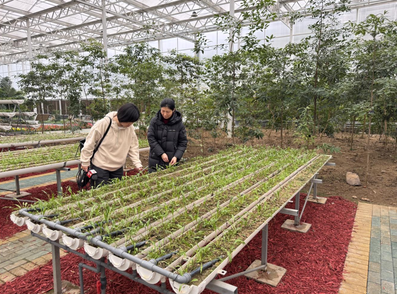三峡集团国家工程中心长江生物多样性研究中心高级工程师胡梅香(右)讲解珍稀植物丰都车前繁育情况。