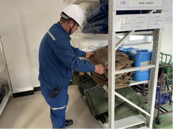 每次收到降温预警,白浪油库就会立即进入‘备战状态’。为系统性应对冬季安全风险,白浪油库建立了“有思想准备、有预报信息、有防范措施、有应急物资、有应急预案、有考核通报等方面的“六有”工作机制,如同六道坚实防线,为冬季安全生产提供全方位支撑。在应急物资仓库内,草垫、麻袋、防冻包扎物资、三层吸油毡、防渗透布等物资分类整齐码放,仓库管理员蔡骏正逐一清点核对。“我们不仅确保应急物资储备充足,还搭建了与应急、消防、环保等部门的跨单位联动应急机制,一旦遭遇极端天气,能第一时间联动联防单位开展支援,做到有备无患。”