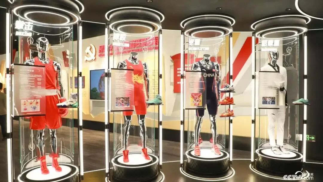 福建品牌安踏体育,入选全球十大最具价值运动服饰品牌。图为安踏博物馆陈列着的各式运动鞋服展品(图|央视网)