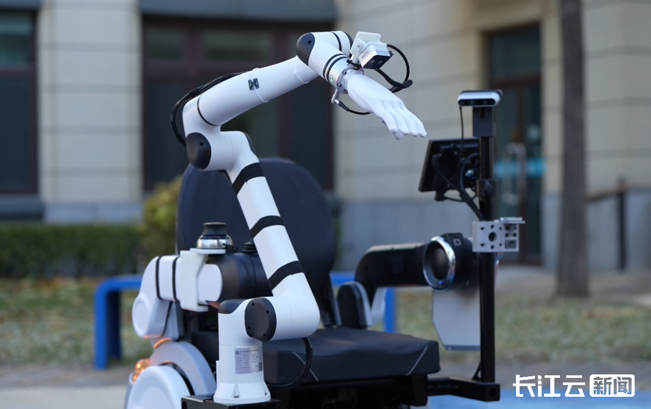 据公司工作人员王春霞介绍,这台设备的核心价值,就是提高老人生活的自主性。在居家场景中,老人只需简单指令,轮椅搭载的灵巧手就能精准抓取物品,平稳拿起水杯、水果等,避免了老人起身取物时的摔倒风险。走进厨房,灵巧手更是“好帮手”,借助压力传感器调节力度,它能安全取放微波炉里的饭菜,操控电饭煲等小家电,还能把桌面擦拭干净。即便出门在外,这双“手”也不缺席,按电梯按钮、刷门禁开门,让老人进出家门、上下楼实现“自主自由”。