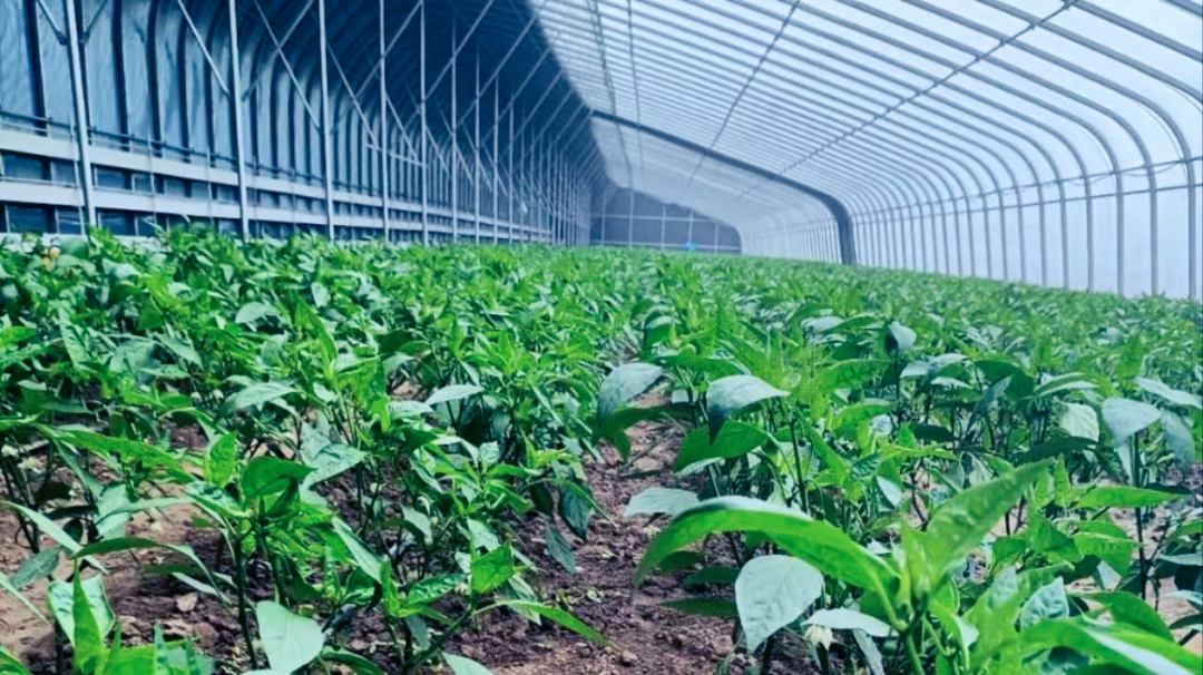 冬日暖阳下,记者走进麻城市宋埠镇彭店村,连片的辣椒大棚如银色波浪般铺展,景象壮观。田埂边,村民胡明厚正将刚采摘的辣椒搬出大棚装车。他高兴地告诉记者:“现在辣椒送到村里工坊,分级包装后由村公司统一销售,我们只管种,不愁卖!”