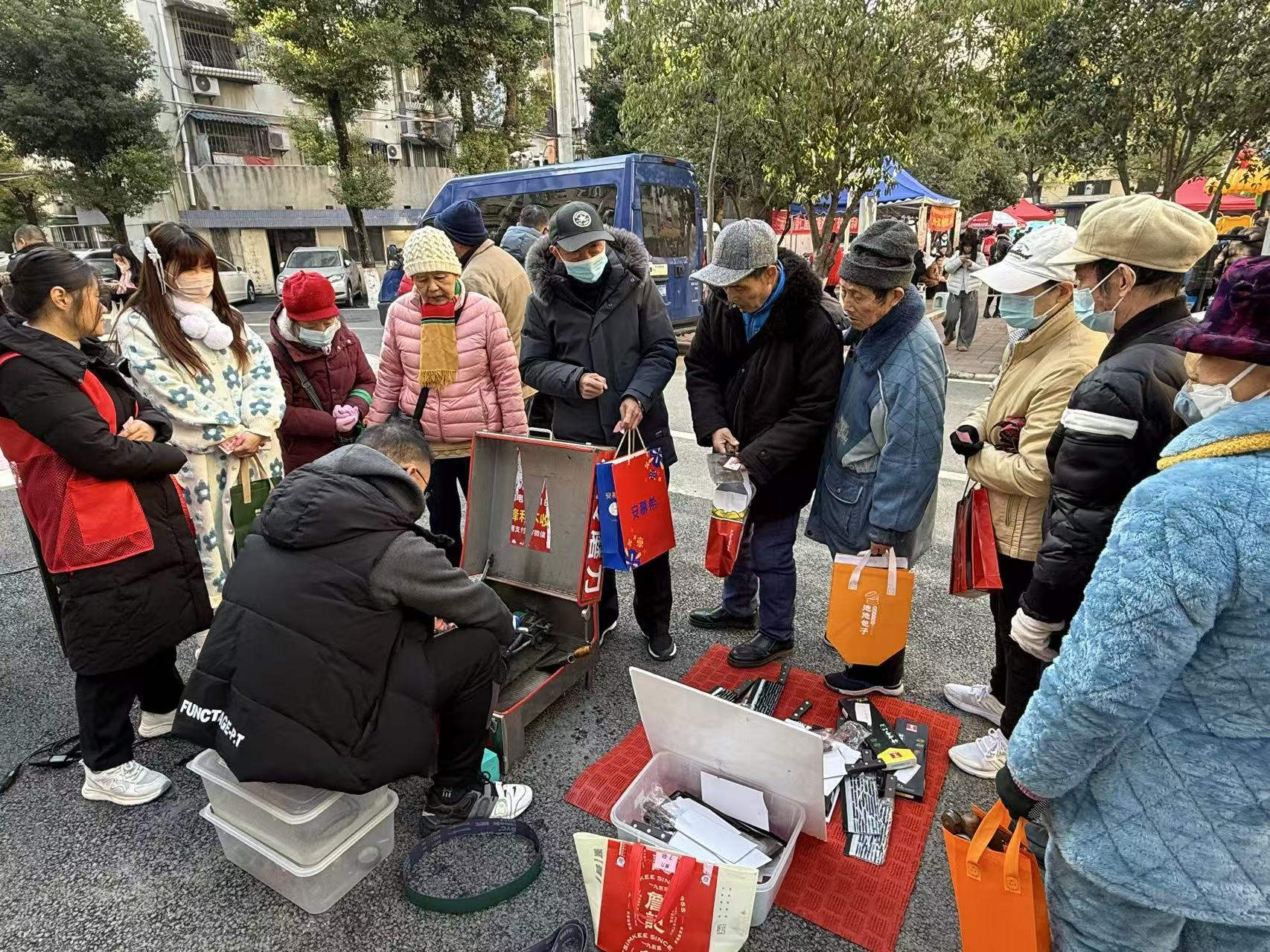 便民服务区更是人气爆棚,理发、磨刀、修鞋、修伞、缝补、配钥匙等“接地气”的服务项目,精准解决了居民的日常难题。考虑到辖区高龄、独居、行动不便老人的特殊需求,社区还延伸服务触角,组织志愿者携带专业工具上门提供理发服务。志愿者在老人家中细心修剪头发,同时亲切唠家常,让老人们在清爽整洁中切实感受到社区的专属关爱。“社区想得太周到了,解决了我们的大难题!”一位老人家属由衷称赞。