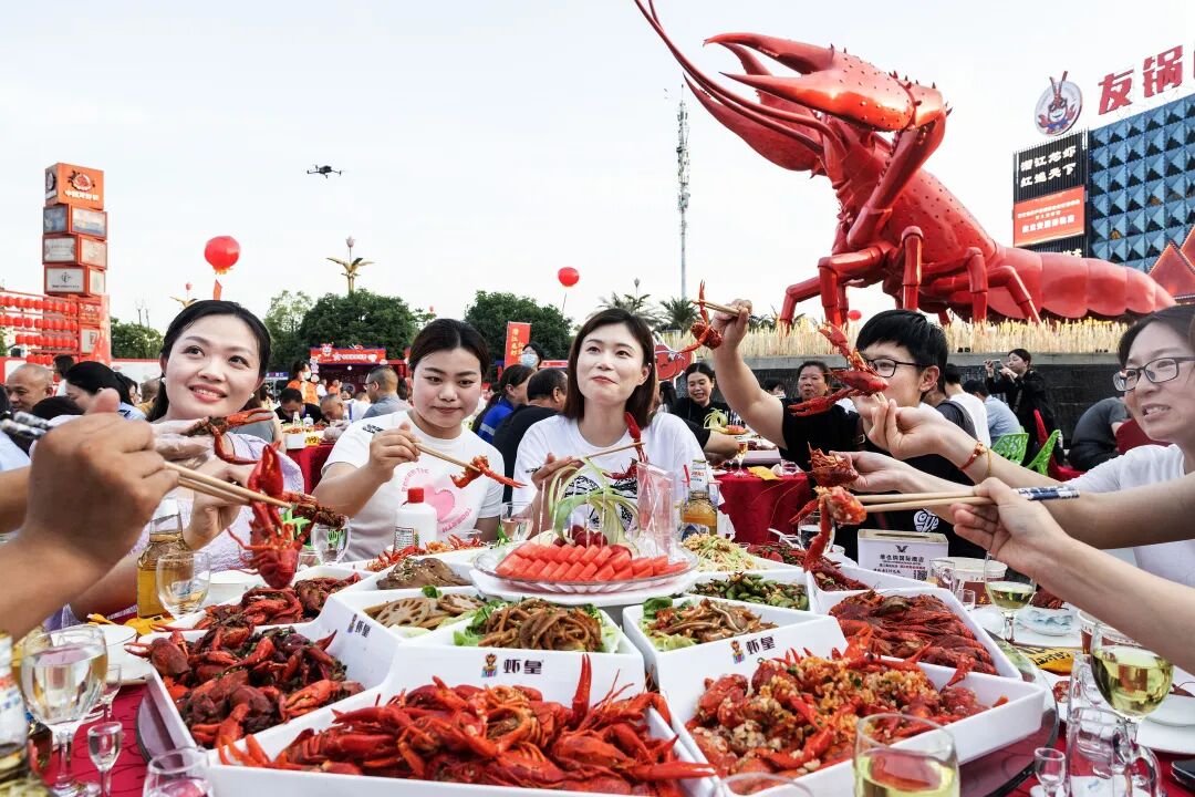 来自五湖四海的龙虾美食爱好者齐聚潜江品尝小龙虾(任勇|摄)