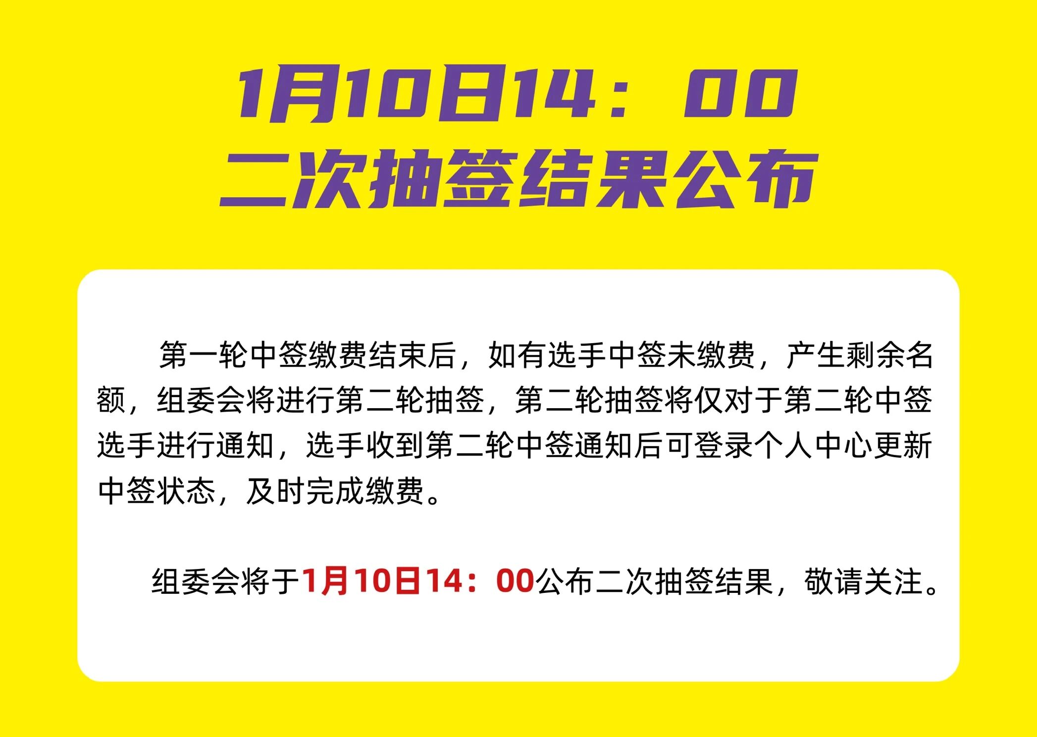 将公布二次抽签结果