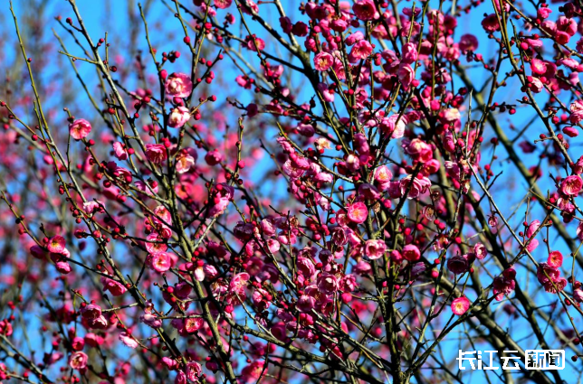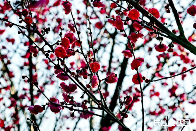 2026年1月7日,襄阳市南漳县城北梅园红梅初绽,娇艳欲滴,耀眼夺目。