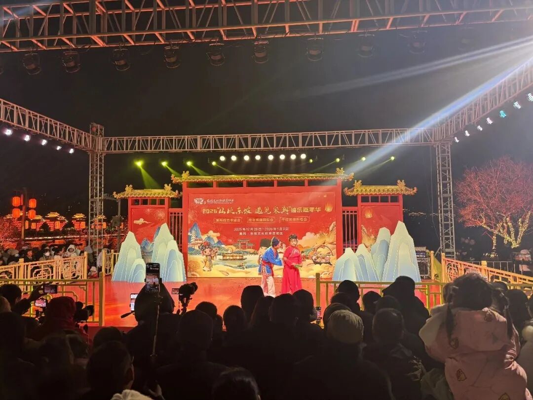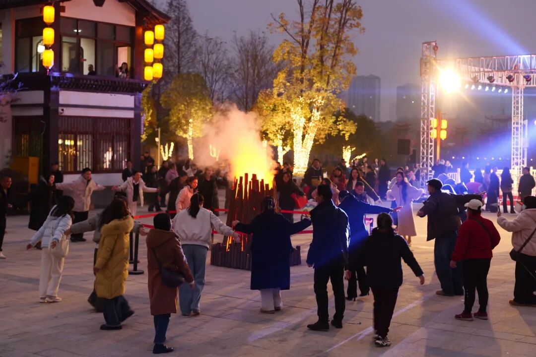 2026年元旦假期,湖北黄冈黄州“从此东坡·遇见宋潮”元旦文旅消费活动,迎来八方游客。尽管寒意犹存,但景区内人流如织,欢声笑语洒满整个东坡渡景区,吊锅宴、篝火晚会、黄梅戏、跨年晚会、无人机、主题灯会、沉浸式夜游、非遗互动、小吃市集等系列文旅活动,共同构成了一幅生机勃勃的新年文旅画卷。