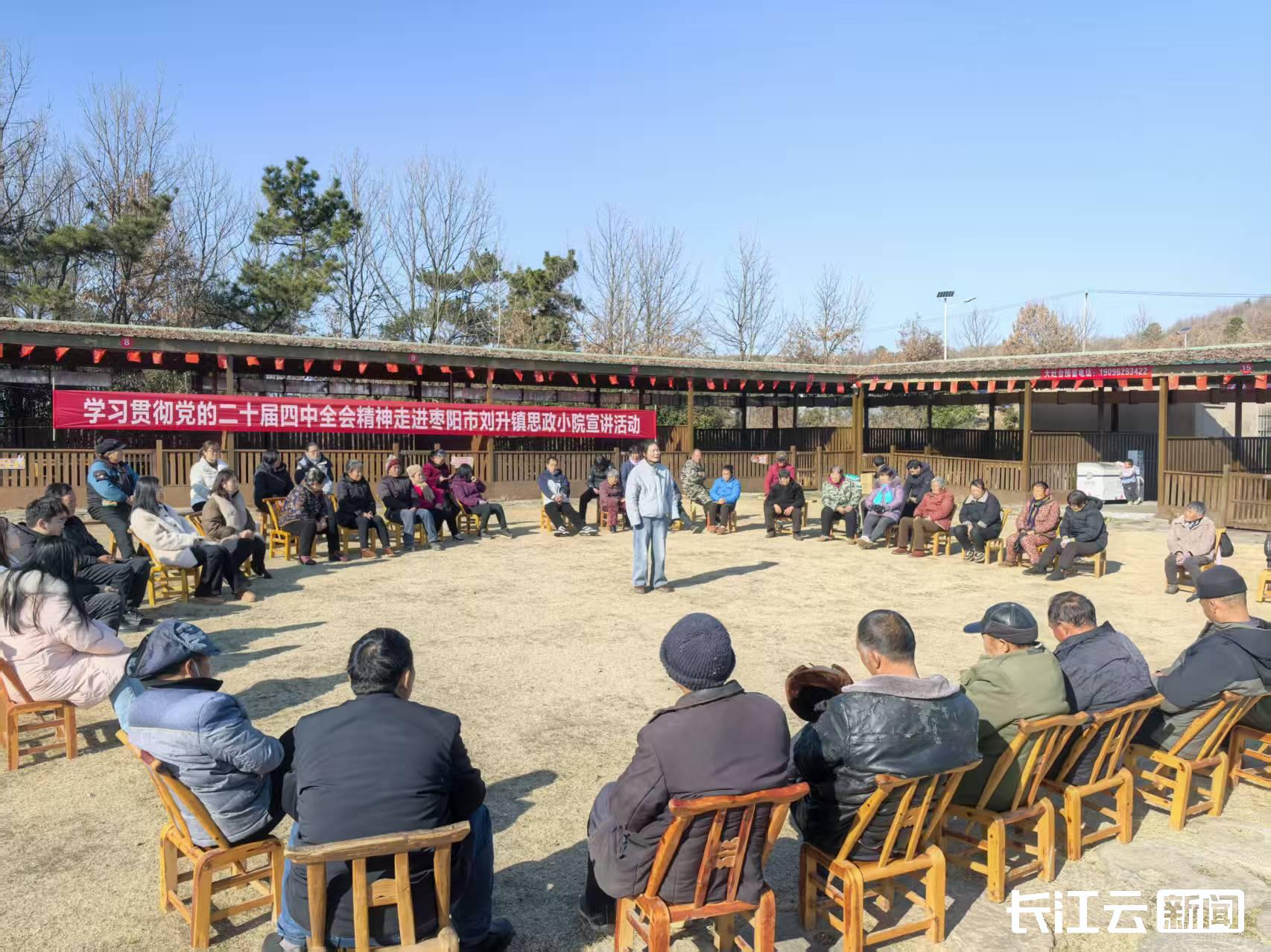 村民们经常聚会聊天的议事亭下、为群众增收的农家大灶台旁,大家围坐在一起,聆听身边人讲述身边的故事……1月7日,枣阳市学习贯彻党的二十届四中全会精神思政小院宣讲活动在刘升镇李老湾村枣树林举行,百姓宣讲员以自己的亲身经历和村庄的巨大变化,诠释党的二十届四中全会精神在基层的生动实践。