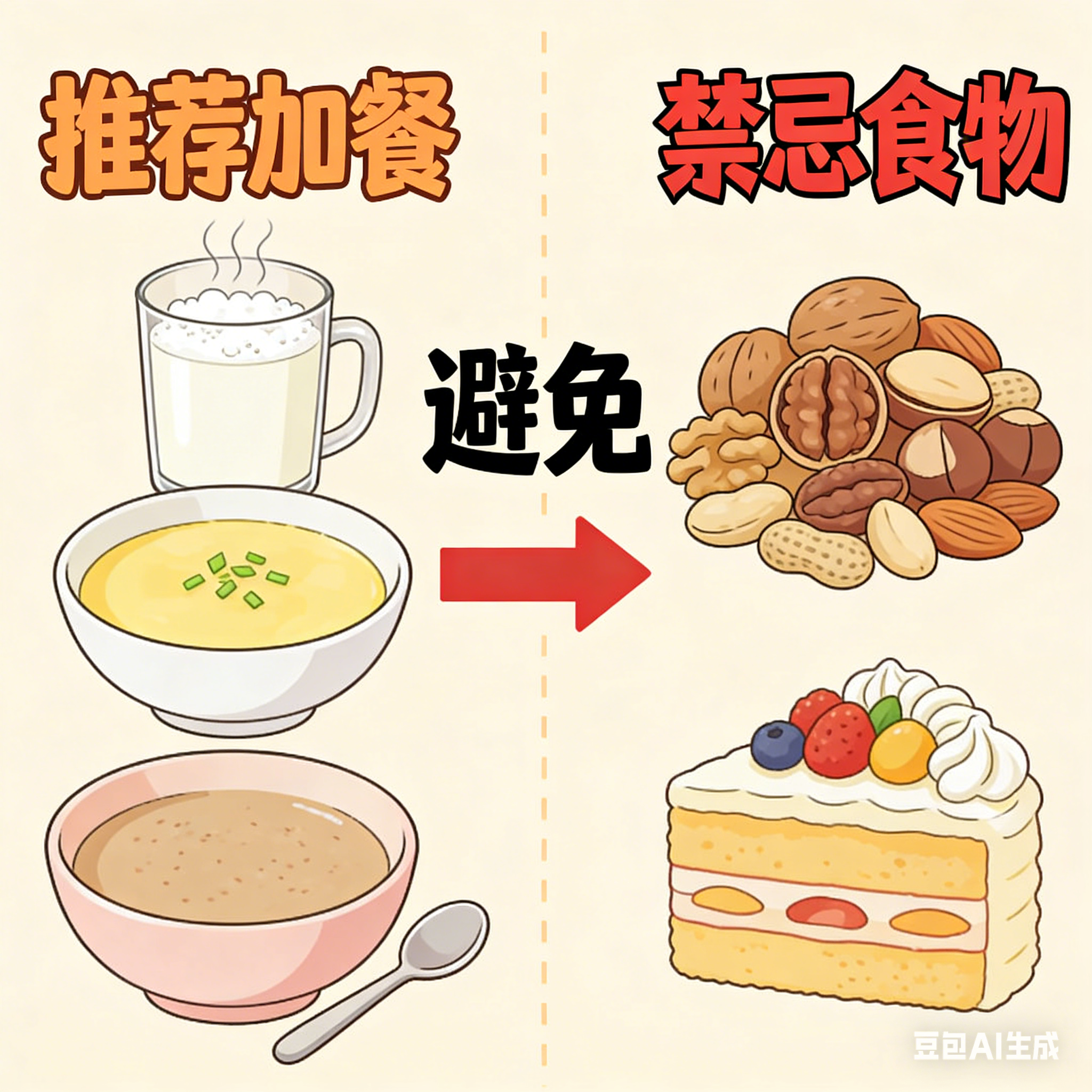 胃肠基础病老人专属建议:加餐优先选温和易消化的食物,如温牛奶、蒸蛋羹、藕粉,避免吃坚果、糕点等不易消化或甜腻的食物,防止加重胃肠负担。