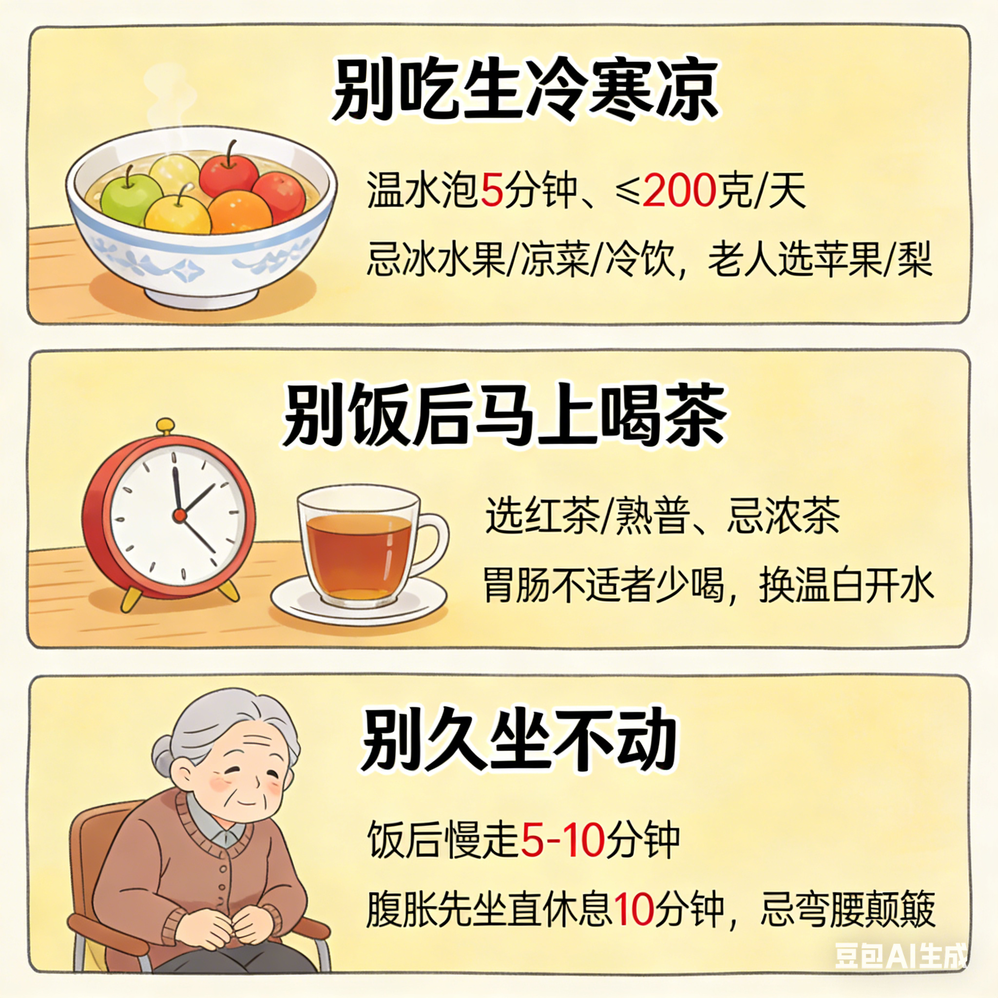 三、避坑提醒:这3个“伤脾胃”行为,老人坚决别做