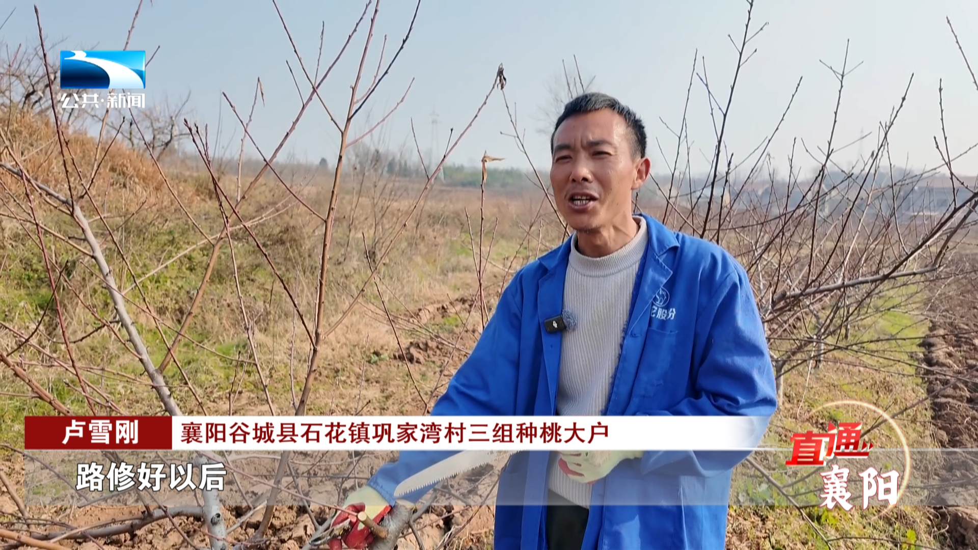 襄阳谷城县石花镇巩家湾村三组种桃大户 卢雪刚:路修好以后,消费者就到我们园子里来了 ,我就不用出去卖了。今年春天来说 ,我这(桃子)销售还不够(卖) ,所以我今年又增加了20亩。