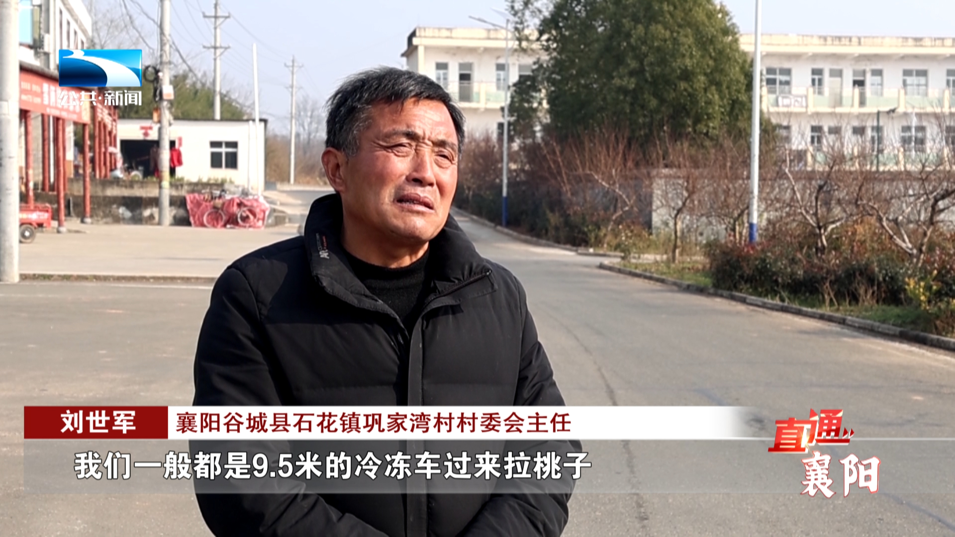 襄阳谷城县石花镇巩家湾村村委会主任 刘世军:我们一般都是9.5米的大冷冻车过来拉桃子 ,以前的3.5米车不好进来,制约了产品销售。现在我们通过路修好了后 ,大车能进来了以后,我们所有的货物销售到北上广。