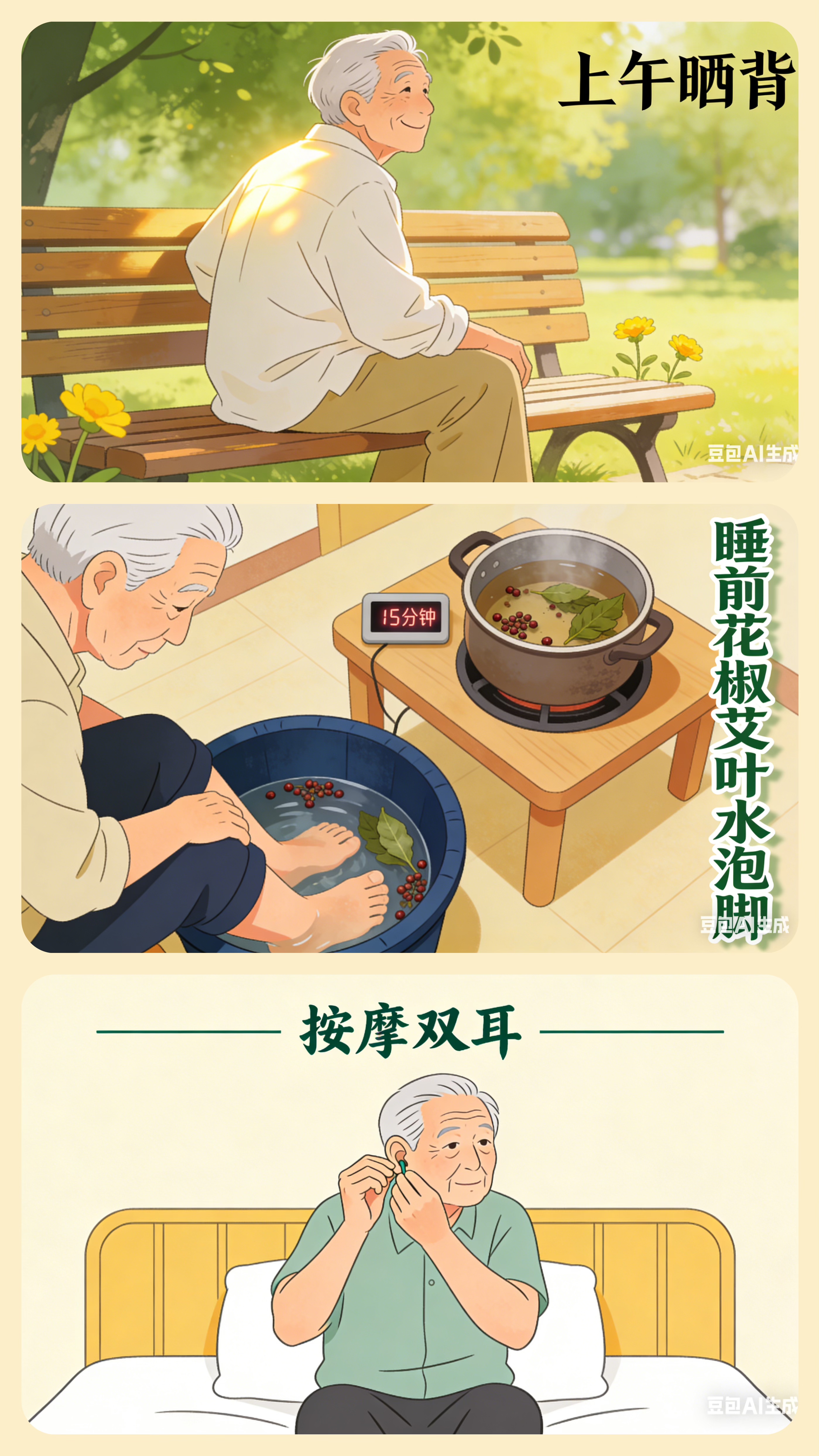 - 上午晒背:选择上午10点左右,背对太阳晒15-20分钟。后背的督脉是“阳脉之海”,晒背是补充阳气最天然有效的方法。