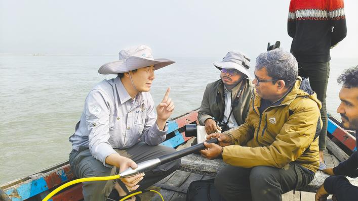 孟加拉国河流浑浊,目视难度大。而中国的实时声学监测系统,恰恰是为“听”豚而设计的。
