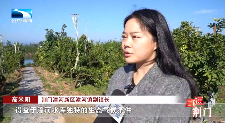荆门漳河新区漳河镇副镇长 高米阳:得益于漳河水库独特的生态气候条件和长期我们推广绿色生态的种植技术,漳河新区的柑橘形成了鲜嫩多汁、皮薄,并且色彩非常金黄等等这些优良的品质,屡次获得了中国农博会金奖等国家级的项目。