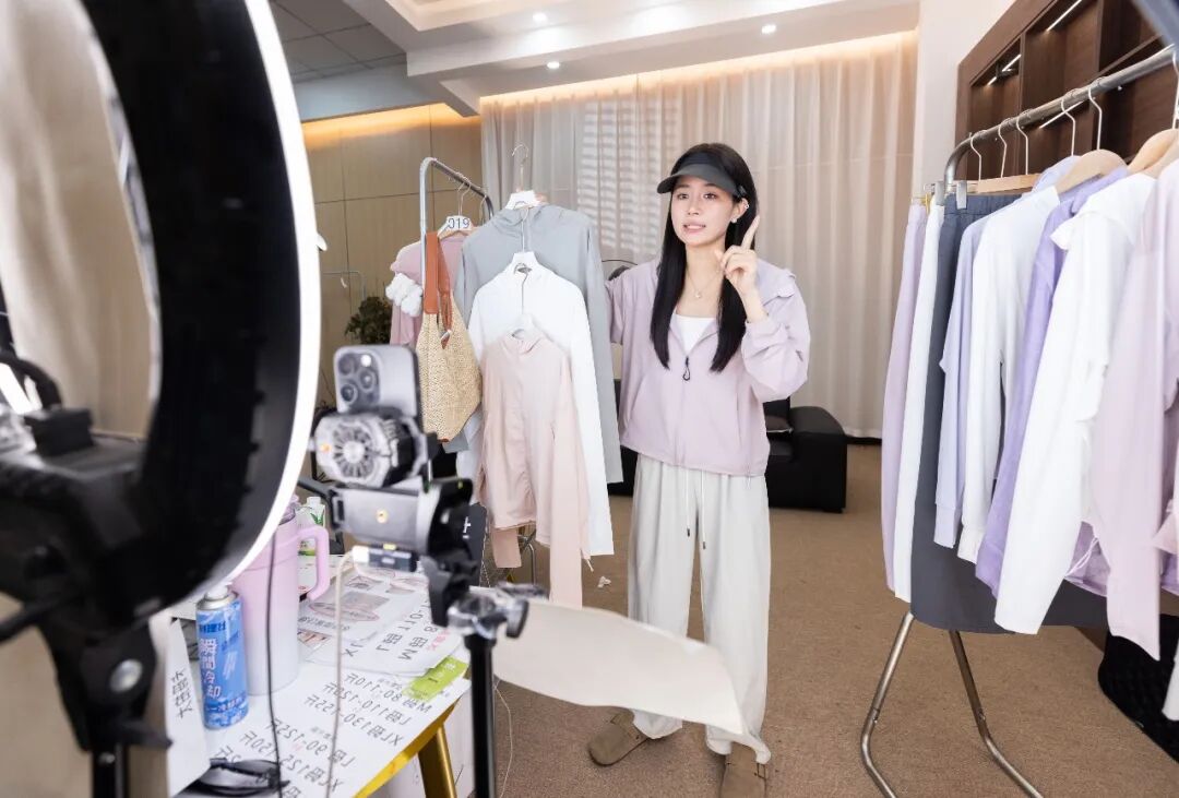 天门通天传媒公司直播间,主播忙着推荐防晒衣(柯皓|摄)