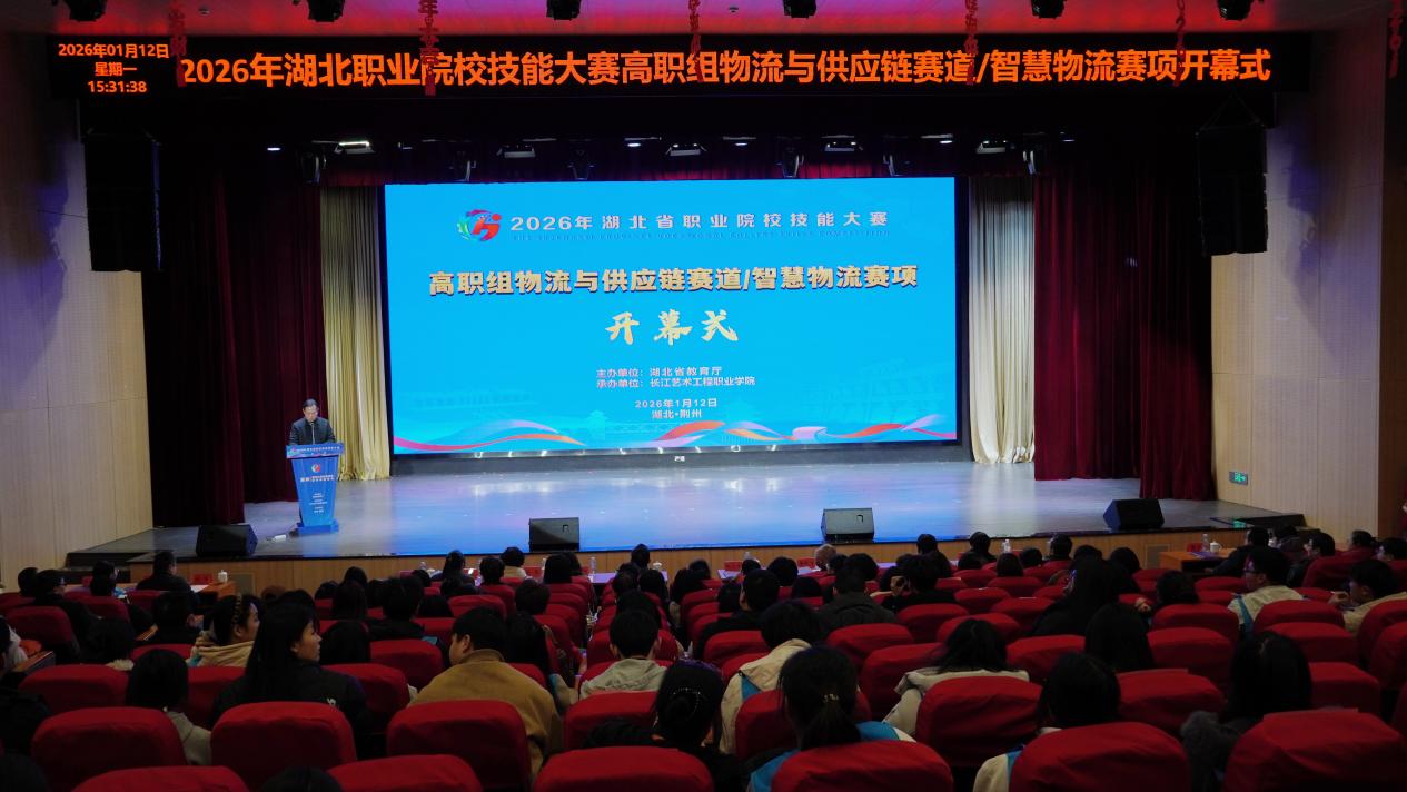 冬藏精粹,荆楚聚贤;智慧潮涌,物流新篇。荆州作为国家历史文化名城、长江中游重要港口城市、国家重要的公路交通枢纽和现代物流节点城市,正积极融入全省乃至全国发展大局,为物流产业发展注入新动能,展现出蓬勃的发展活力与巨大的发展潜力。1月12日至14日,2026年湖北省职业院校技能大赛高职组物流与供应链赛道、智慧物流赛项在长江艺术工程职业学院隆重举行。本次大赛由湖北省教育厅主办,长江艺术工程职业学院承办,来自全省76支学生参赛队伍、37名参赛教师及裁判专家、嘉宾共500余人齐聚荆州,共赴这场物流技能与智慧的盛会。