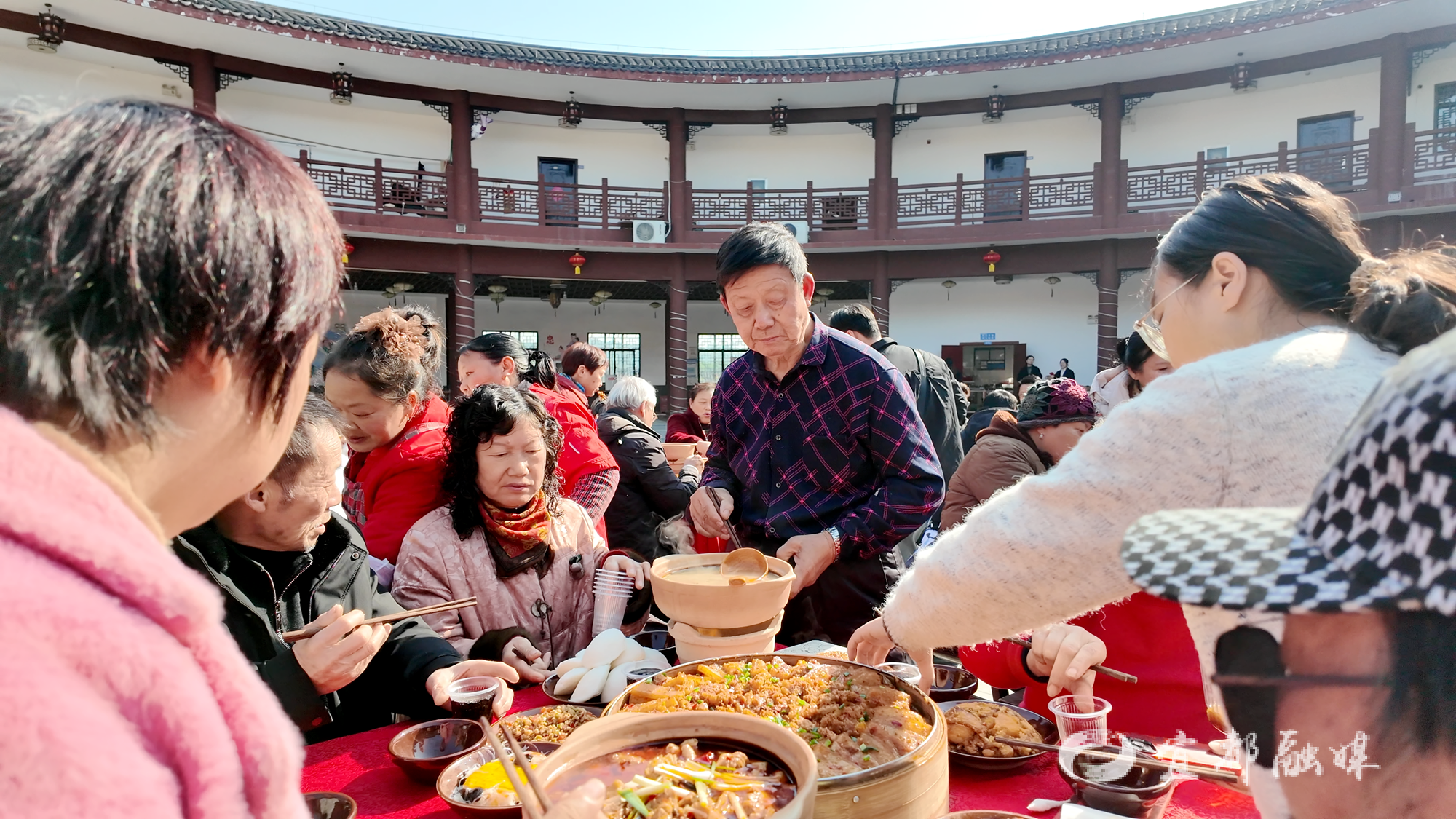 清江湾年猪宴以地方土猪为主要食材,肉质鲜嫩,搭配新鲜蔬菜,热气升腾间,精致摆盘尽显农家质朴与雅致,香气四溢勾人食欲。搭配上年味十足的民俗表演,演员们身着鲜艳服饰,载歌载舞,让游客在品尝美食的同时,沉浸式感受传统年俗的魅力。