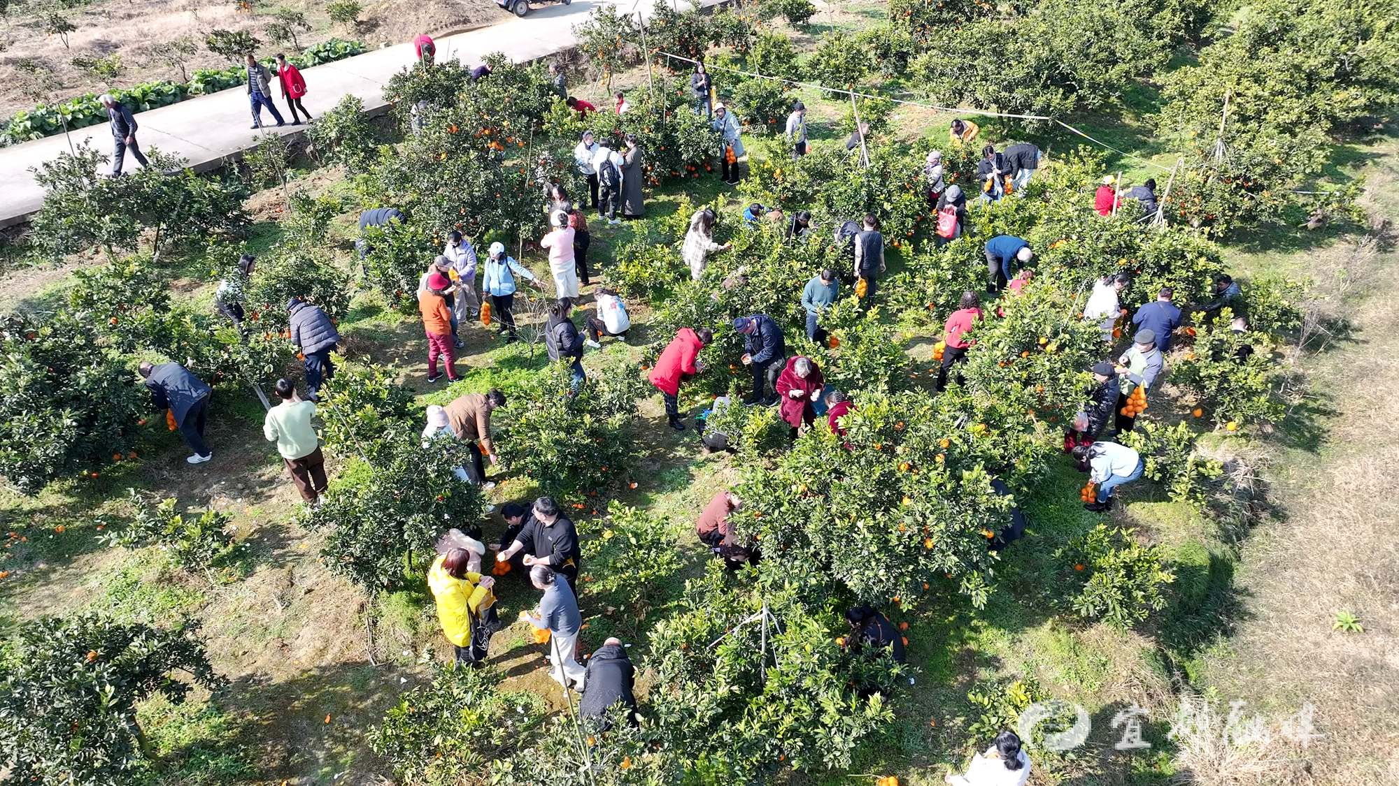 品尝美味年猪宴后,游客们纷纷走进果园,体验亲手采摘橙子的乐趣。