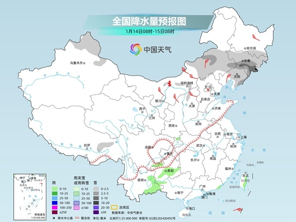 明天,新疆伊犁河谷和沿天山地区、内蒙古中东部、吉林中东部、辽宁北部等地部分地区有小到中雪,其中,新疆伊犁河谷、吉林东部等地局地有大雪或暴雪。湖南西北部、重庆东南部、贵州北部、云南中东部和西南部、广西西部等地部分地区有小雨。