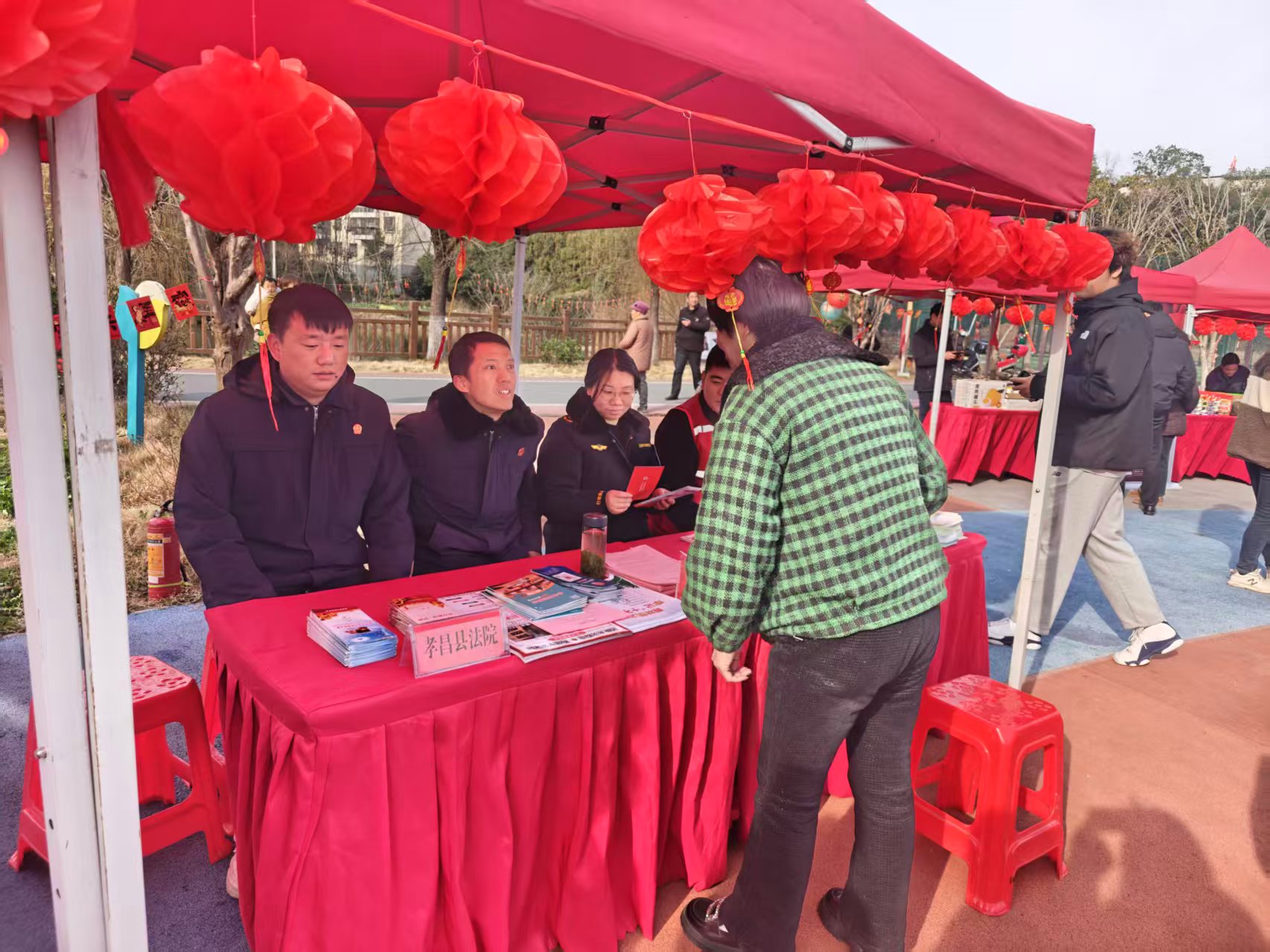 “老乡们,过年期间遇到有人推销‘养老投资项目’可千万别动心!这很可能是骗局!”法庭干警小安拿着宣传手册,用一口地道的孝昌方言大声吆喝着,瞬间吸引了不少老年人围拢过来。活动现场,普法展台被群众围得水泄不通,有的踮着脚听案例讲解,有的凑上前领取印着法律知识的春联福字,还有的拉着干警细细咨询,满是热闹的年味儿。