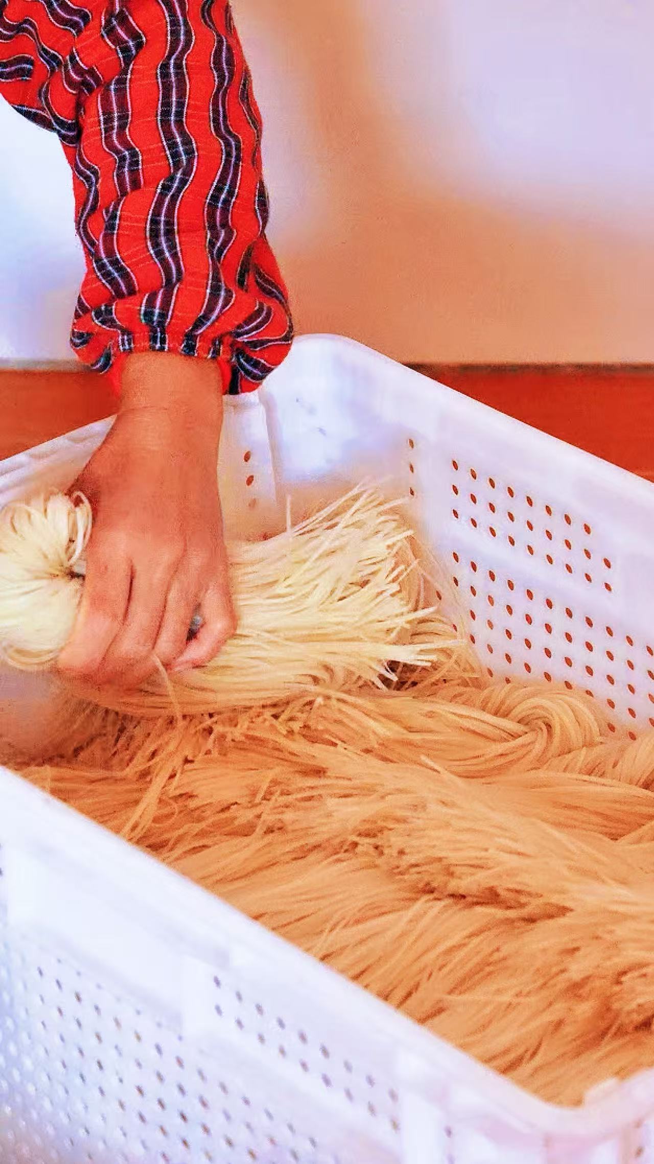经过这五道工序,洁白柔韧、香气浓郁的红薯粉丝才算制作完成,每一根粉丝都承载着村民们的匠心与坚持。