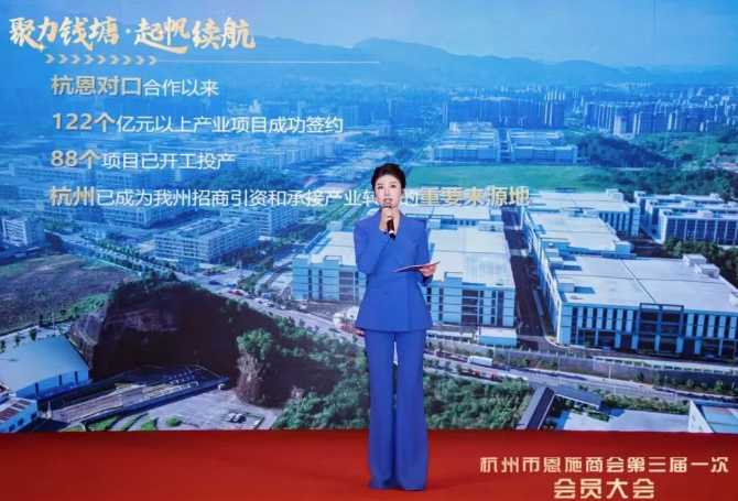 1月10日,杭州市恩施商会第三届一次会员大会暨恩施州招商推介会在杭州举行。州委常委、州委统战部部长郭玲出席并致辞,与在杭恩施籍企业家、各界嘉宾共话乡情、共谋发展。