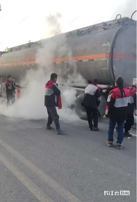 油罐车起火路人心悬 八名快递小哥挺身扑救化险为夷获消防部门点赞