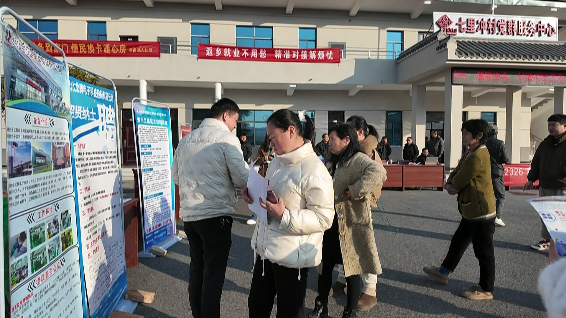 为助力返乡人员在家门口实现就业,日前,孝感市孝昌县“春风行动”暨“就业援助季”系列招聘活动走进小悟乡七里冲村,为当地群众送上新年的第一份就业“大礼包”。