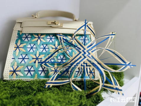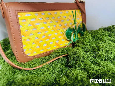 与荆楚纹样系列方巾同样吸睛的,还有“古竹新韵”竹编箱包。这套产品以“四季流转”为灵感,摒弃传统竹编箱包单一风格,创新采用“竹编+皮革”组合,融入四季色彩与纹样设计,既保留了竹编的自然肌理,又解决了传统竹编易磨损、承重弱的痛点,兼顾观赏性与实用性。