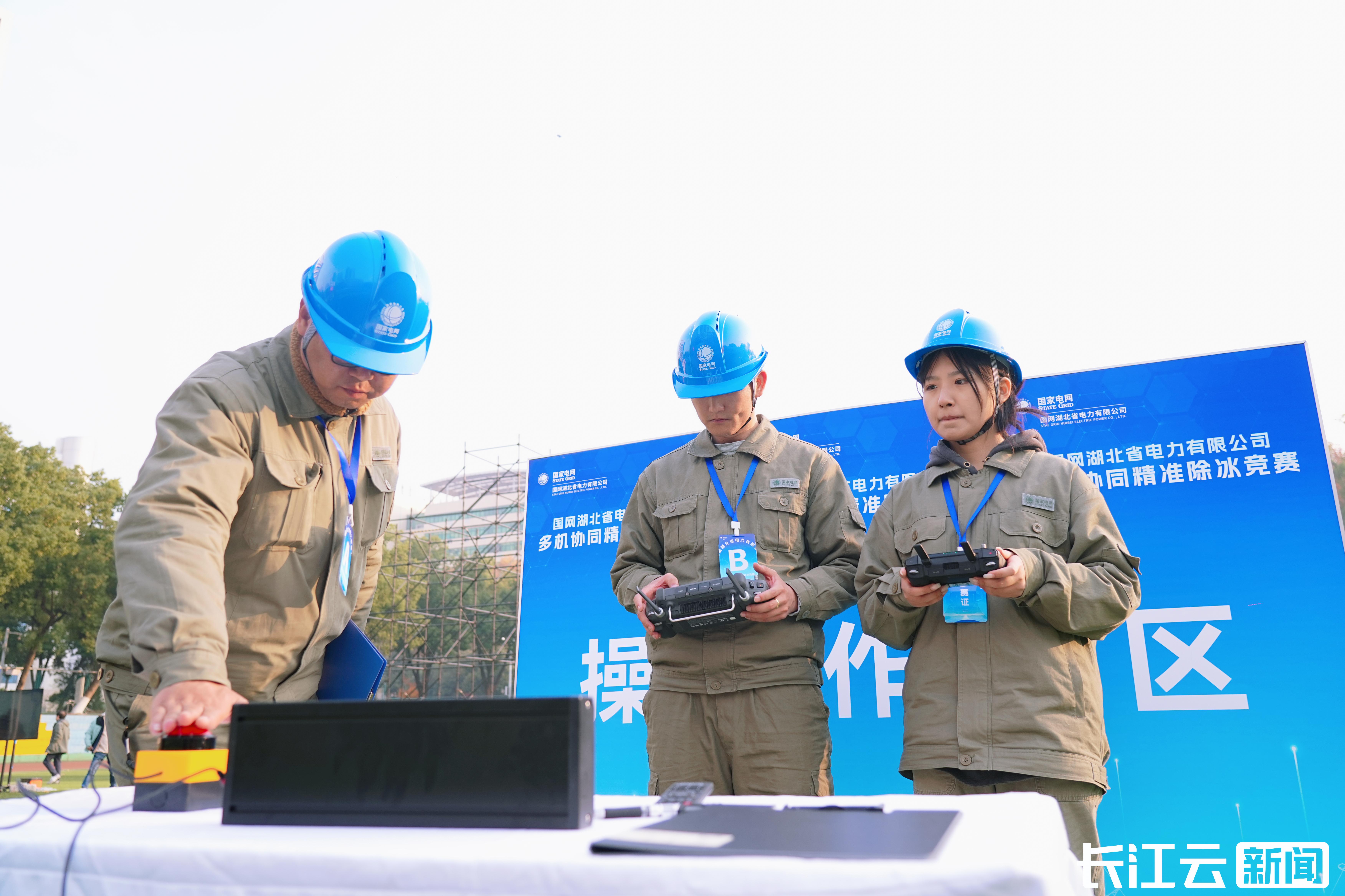 ▲国网湖北电力有限公司技术培训中心承办公司第十四届职工技能运动会岗位练兵无人机除冰赛项比赛现场