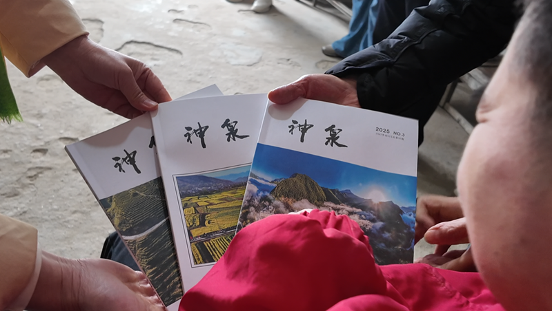 陈立丽把刊有汪灿作品的杂志递到他手中,温柔地说:“汪灿是一个头脑非常聪明的孩子。今天我特地给他带来了这两本发表有他作品的《神泉》刊物,并且给他带来了《房县作家作品选》,希望他从这些文字中汲取更多的营养,我们也会持续关注他的文学之路,助力他用文字在文学的路上走得更高、更远、更广。”