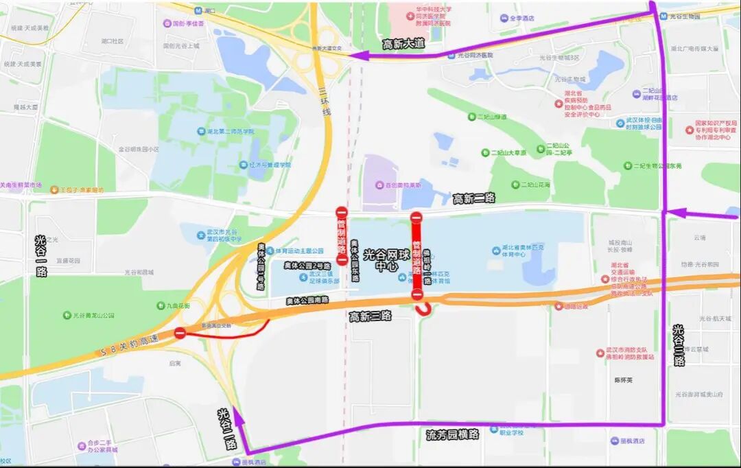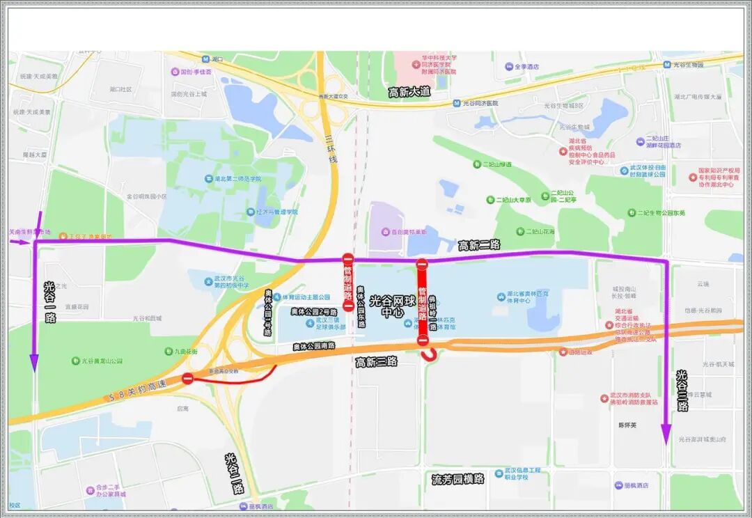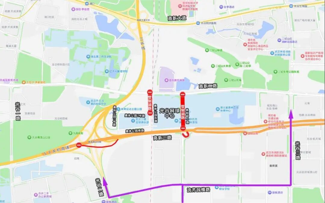 三环线高新二路出口匝道(光谷大道立交至新武黄立交段)临时封闭(前往足球训练基地车辆视情况放行)。