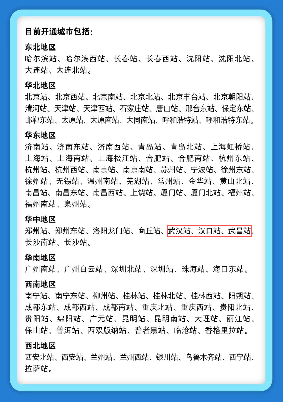 其中,武汉站、汉口站、武昌站均在服务试点范围内。