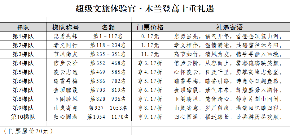 游客参加本次活动,不仅是以超值价游览胜地,更是以先行者的身份,共同见证并传播这座英雄之山的冬日华章。期待与您在木兰山巅相遇。