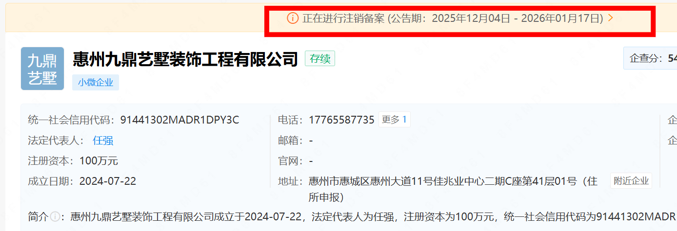 而目前,惠州九鼎正在注销备案,公告期间2026年1月17日结束。