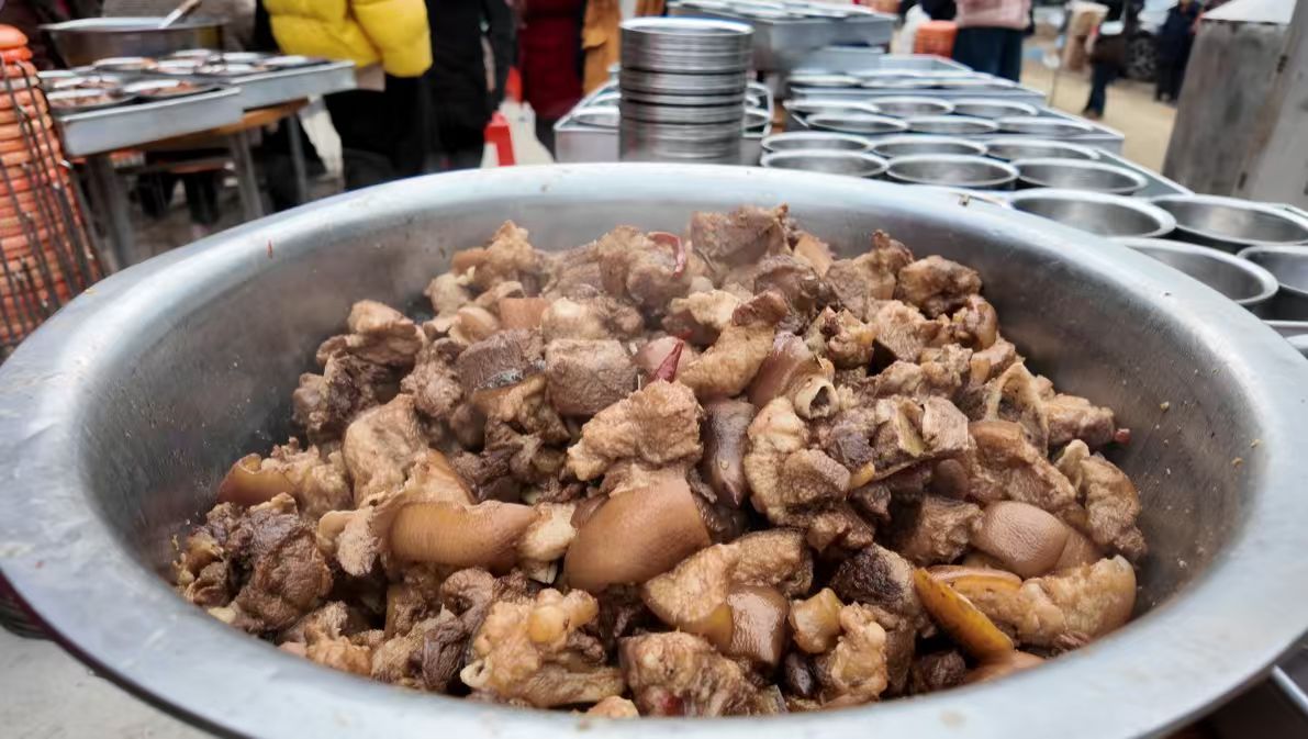 冬日的庭院里,有人端着碗站着畅谈,有人围坐在长凳上并肩而食,有人蹲在角落大快朵颐,氤氲的热气模糊了彼此的脸庞,却凝聚成最动人的冬日图景。这顿杀猪饭的鲜香,终将镌刻进无数人的记忆深处,成为这个冬天最温暖的注脚——记忆里有柴火的温度、猪肉的醇香,更有素昧平生却同桌共食的人情暖意,这份跨越山海的信任与善意,正是年味最本真的模样。