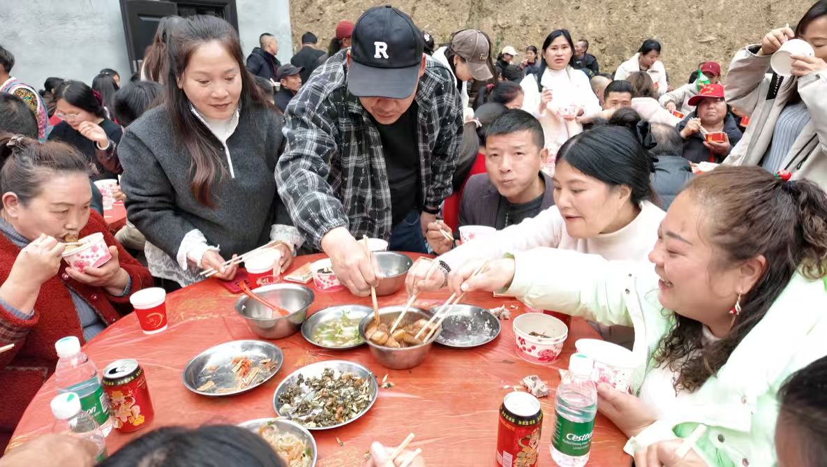 金本茂的初衷,本是趁着年关将至,邀约乡亲邻里小聚,延续村里年前吃杀猪宴的老传统。他仅在本地社交平台发出了一则简单邀约,未曾想,这份朴素的热忱经网友不断转发,迅速突破地域界限,从县内传遍周边,更让千里之外的吉林、重庆网友动了心,千里奔赴只为亲口尝尝这份地道的乡村年味,亲身体验这份久违的烟火气。看着院中摩肩接踵的客人,金本茂的心中满是意外与感动。