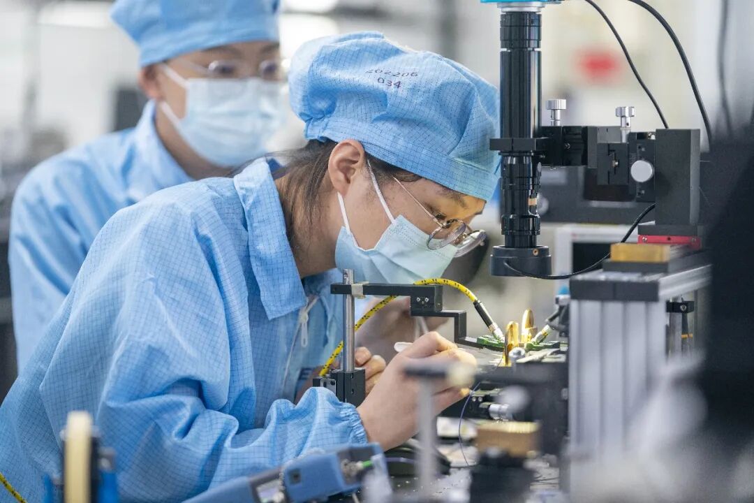 国家信息光电子创新中心无尘实验室内,工程师对芯片进行性能初测及筛选(魏铼|摄)
