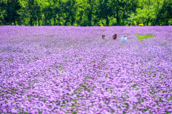 2024年8月26日,游客在查干湖花海拍照留念。